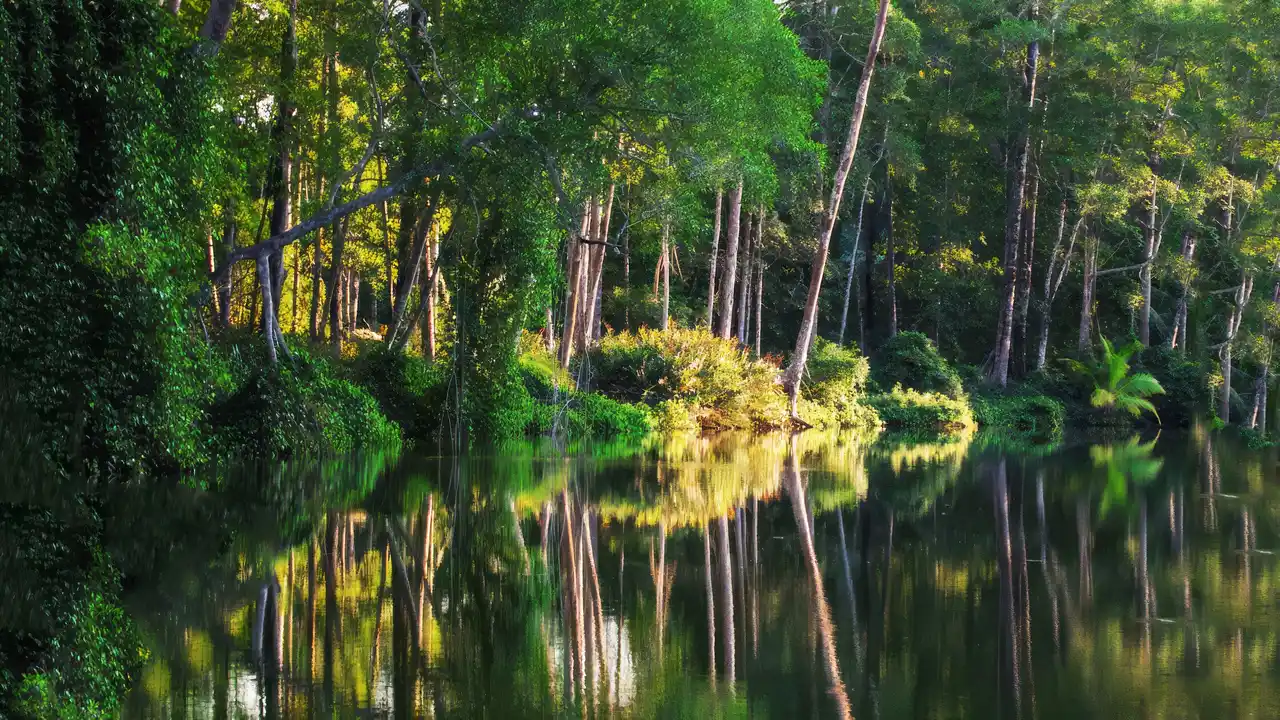 Carara National Park contains more primary rainforest than the relatively close Manuel Antonio National Park. As such, it is wetter than the more popular Manuel Antonio National Park, and has denser tree growth and more mosquitoes and other insects. This environment makes Carara a haven for many bird species making the park a popular birdwatching destination. In addition to scarlet macaws, birds found in Carara include orange-chinned parakeets and other parrots, hummingbirds, woodpeckers, motmots, jacamars, manakins, antbirds, and several species of trogon, including the black-throated trogon. Several species of water birds inhabit the park as well. These include the anhinga, several species of heron, egret and kingfishers.