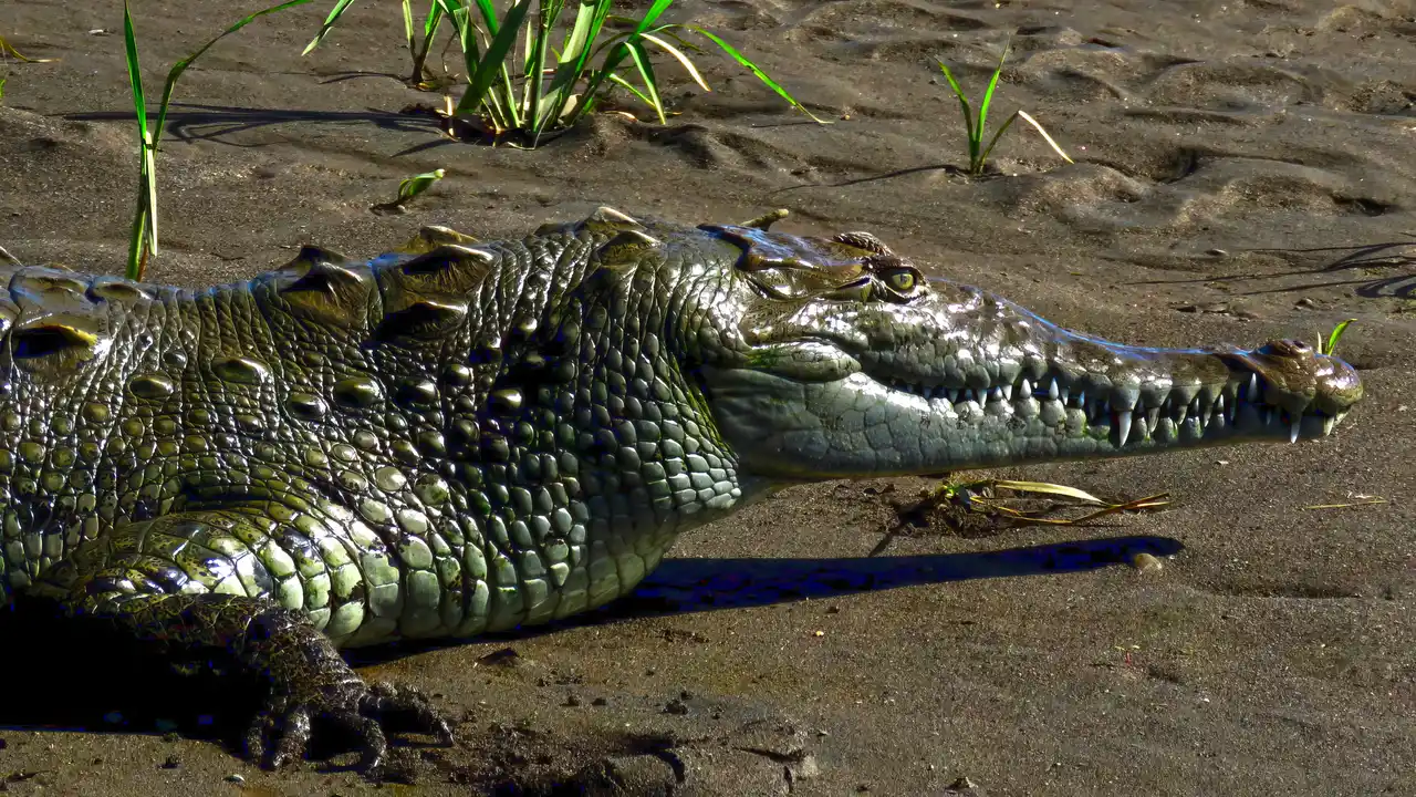 Among the reptiles present in the park are the American crocodile and several snake and lizard species. The Tarcoles River, which forms the northern boundary of the park, is inhabited by crocodiles throughout most of the year. Green and black poison arrow frogs are among the amphibians present. Mammals include white-tailed deer, red brockets, collared peccaries, agouti, kinkajous, Panamanian white-faced capuchin monkeys, mantled howler monkeys, Hoffmann's two-toed sloths and brown-throated three-toed sloths. However, mammals can be difficult to see due to the dense tree cover.